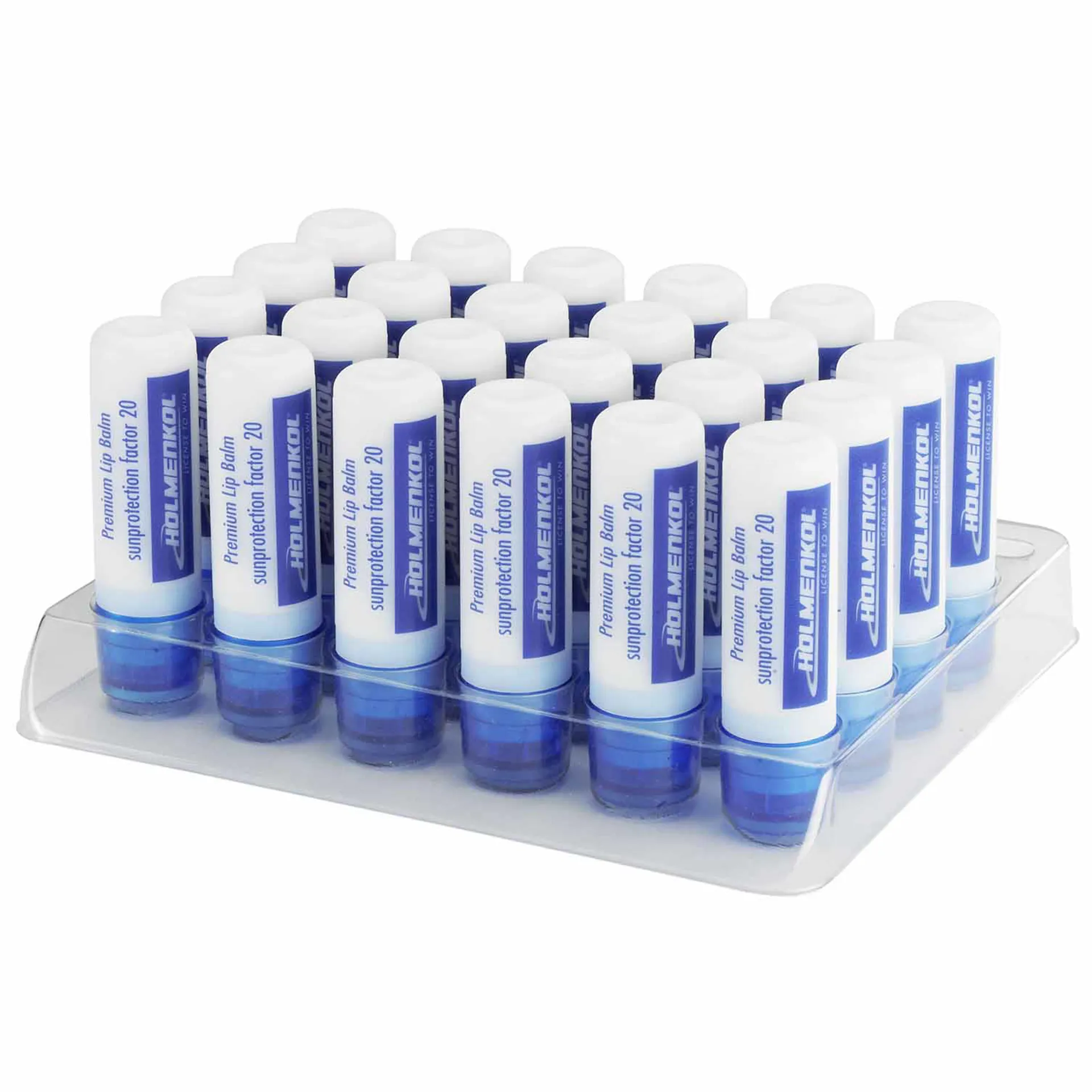Holmenkol Premium Lip Balm is a caring and protective factor 20 lip balm to help protect lips against dehydration and Ultra Violet light.