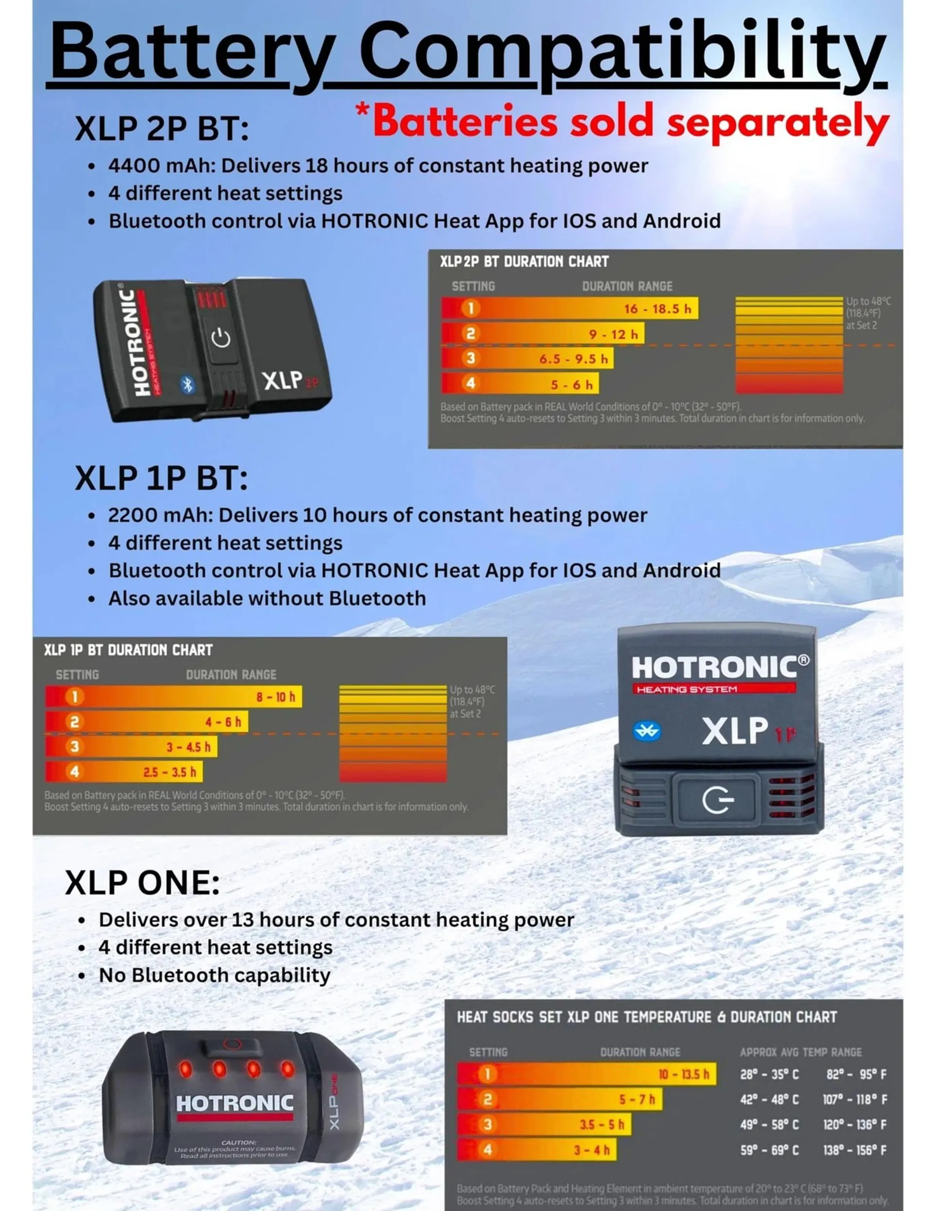 Hotronic Heatsocks Surround feature an extended heating element all around the forefoot to give that extra level of warmth and comfort.