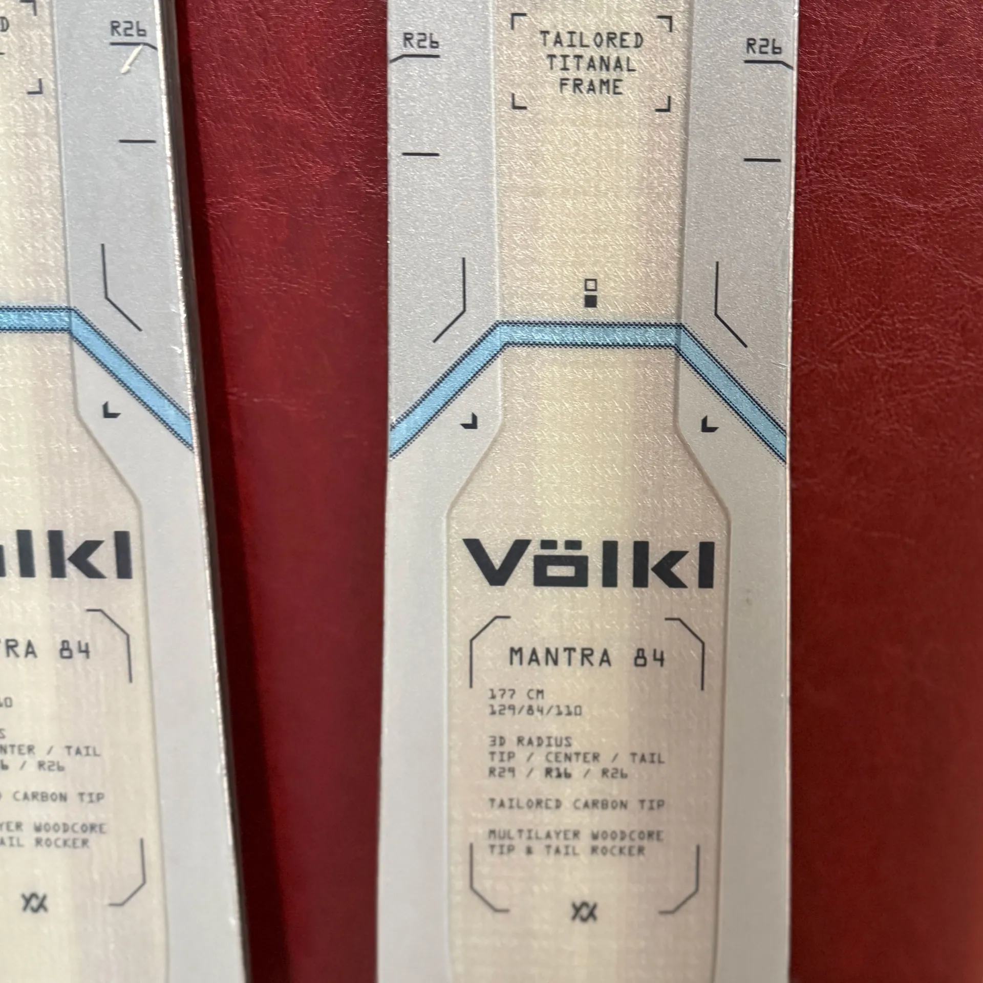 Volkl's key technology is called Tailored Titanal Frame. In contrast to the previous design, the width of the titanal frame is now adapted exactly to each individual ski length. This results in Tailored Titanal Frames, which are positioned above the sidewall along the tip and tail area of the ski to provide the desired damping and torsional stiffness. The size of the frames is tailored to the skier's height, skiing ability and power. This means that longer ski models have a higher titanal content for more stiffness, more direct power transmission and stronger dampening. The shorter the length, the lower the titanal content, which makes the ski more agile, so that smaller, lighter and less powerful skiers can use the full potential performance of the ski. In addition to the Tailored Titanal Frames, a second, thinner titanal layer is located in the binding area, which gives the ski the necessary strength, but also agility.