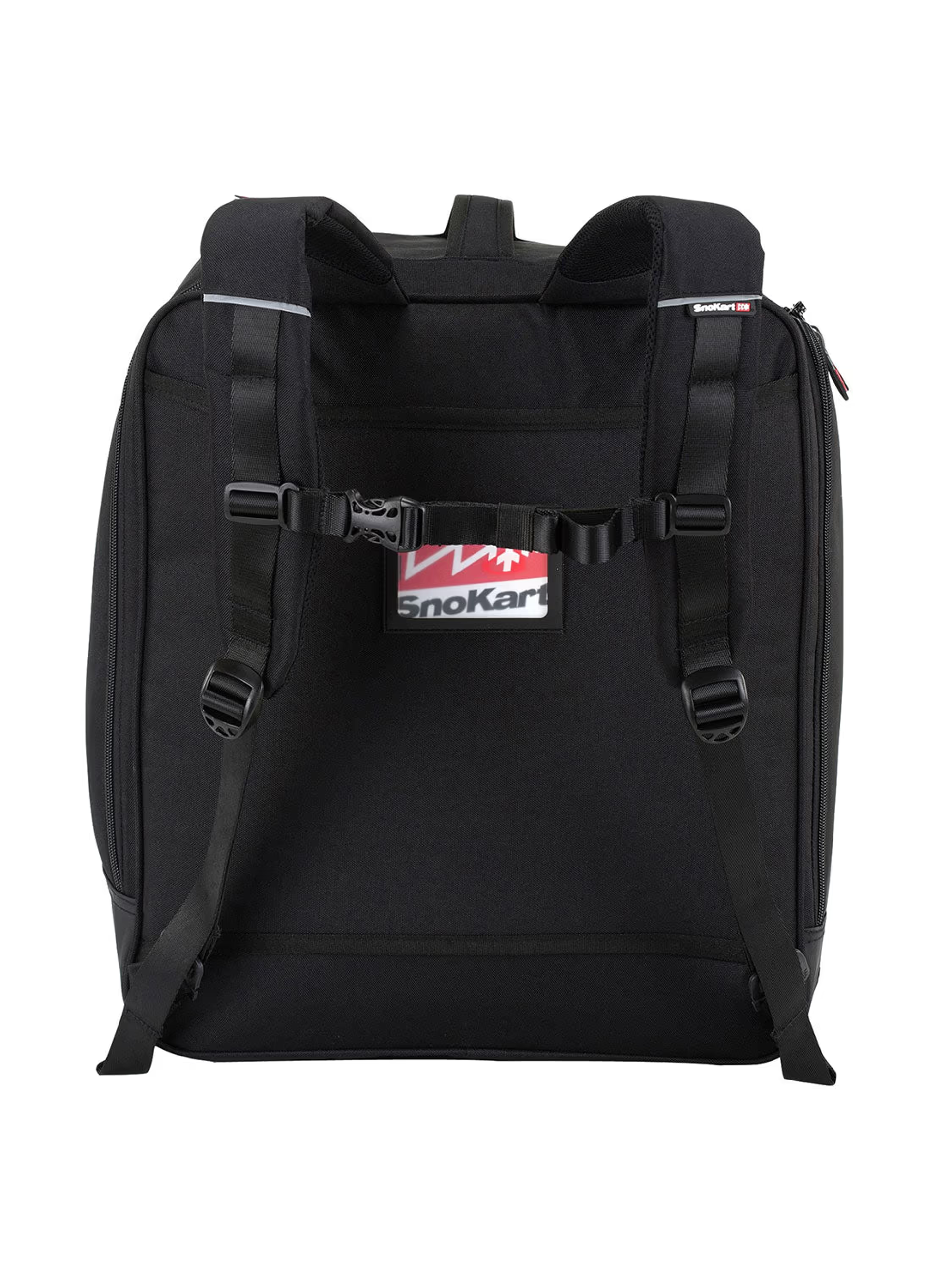 The SnoKart Boot and Helmet pack is a simple but clever backpack for boots, a helmet and accessories. Updated for the latest season it can now be used to carry 2 pairs of boots if required, making it even more versatile. With a backpack harness and a carry compatible back it can be worn, carried or rolled on the handle of your roller luggage.