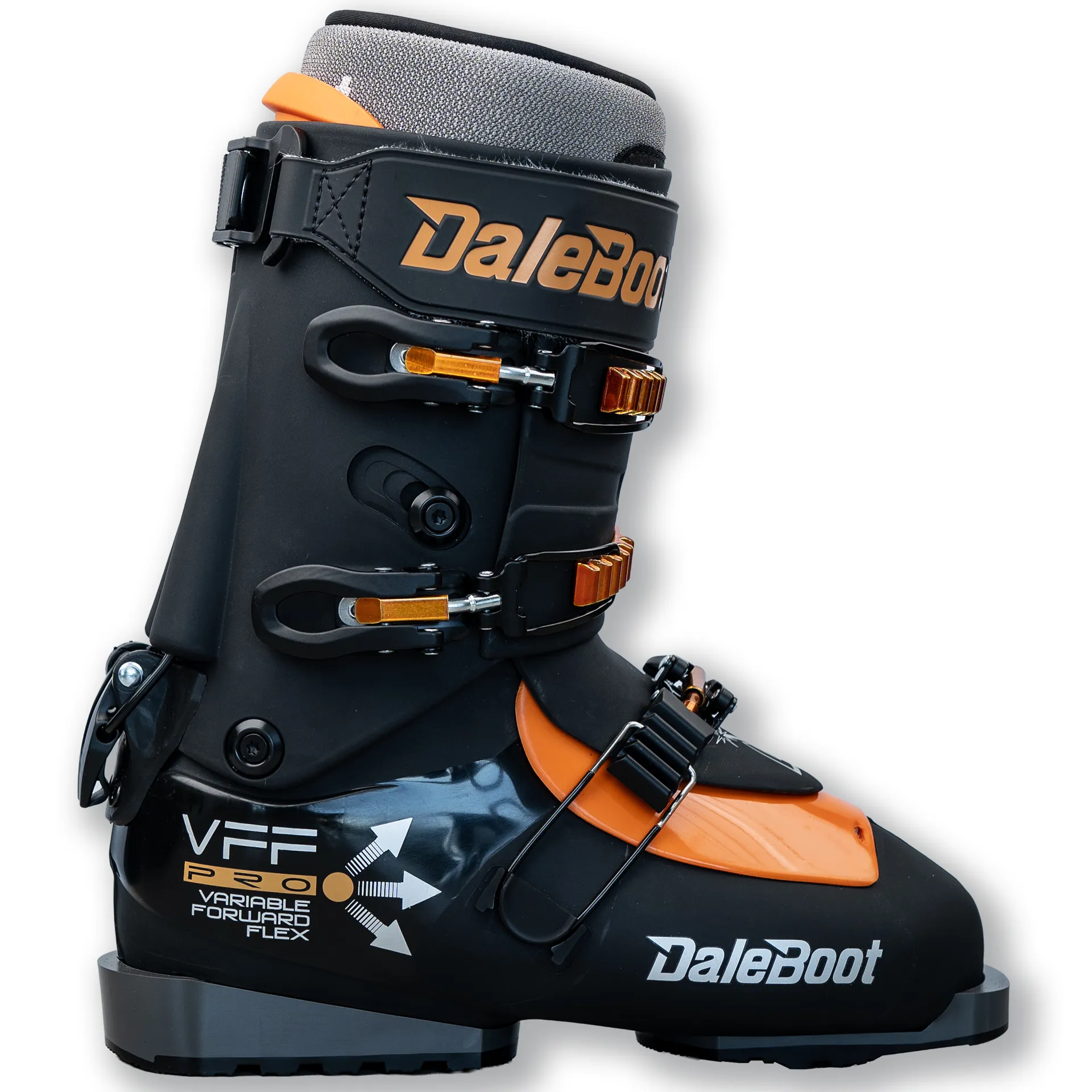 The Daleboot VFF (Variable Forward Flex) PRO is a custom made ski boot, where the boots are customised to your foot and calf dimensions. During your assessment we will assess whether you require the PRO or standard VFF model.