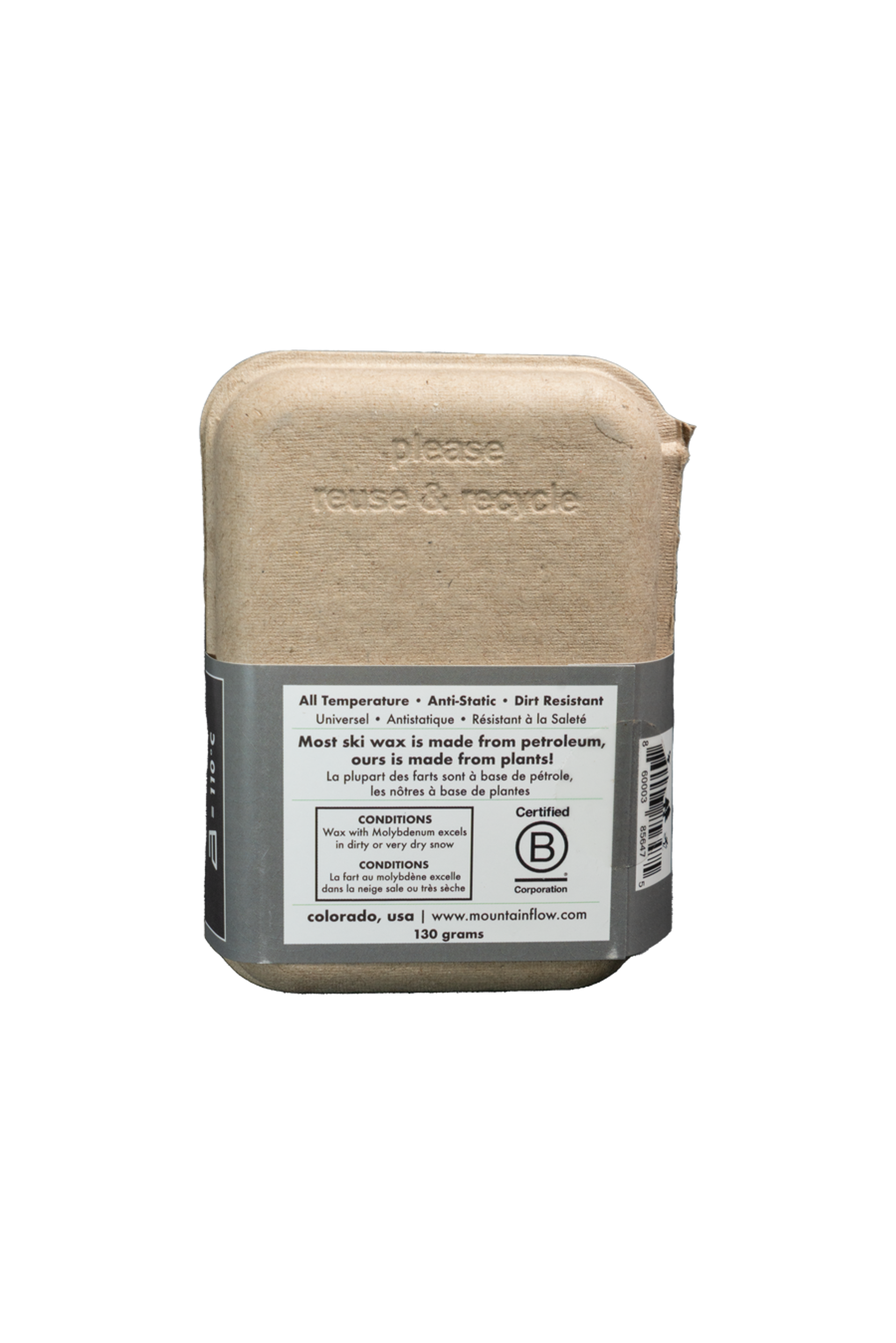 The mountainFLOW Moly treatment wax block is a speciality high molybdenum wax which works well on cold hard/dry snow reducing friction from static build up.